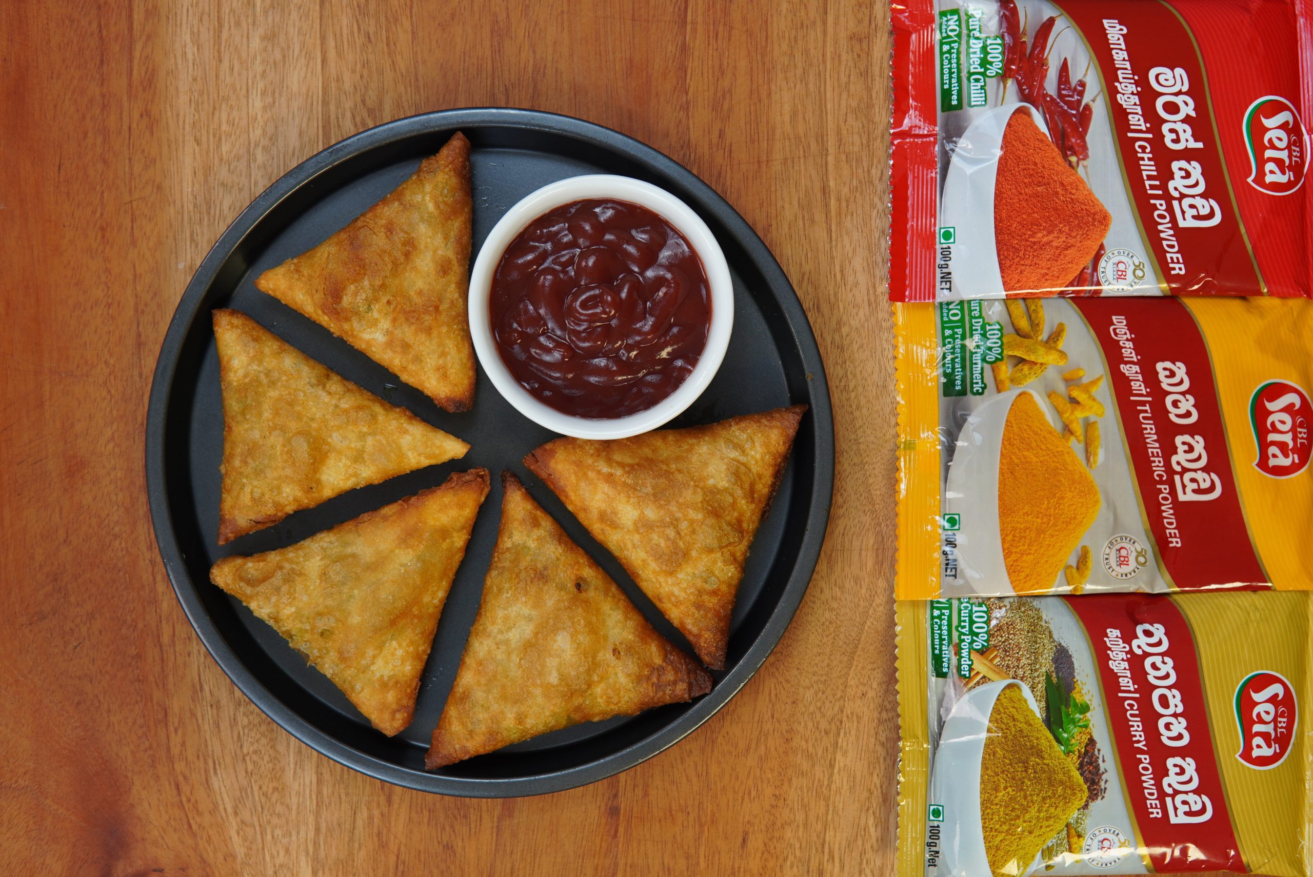 Heat oil in a pan and fry the samosas until golden brown.